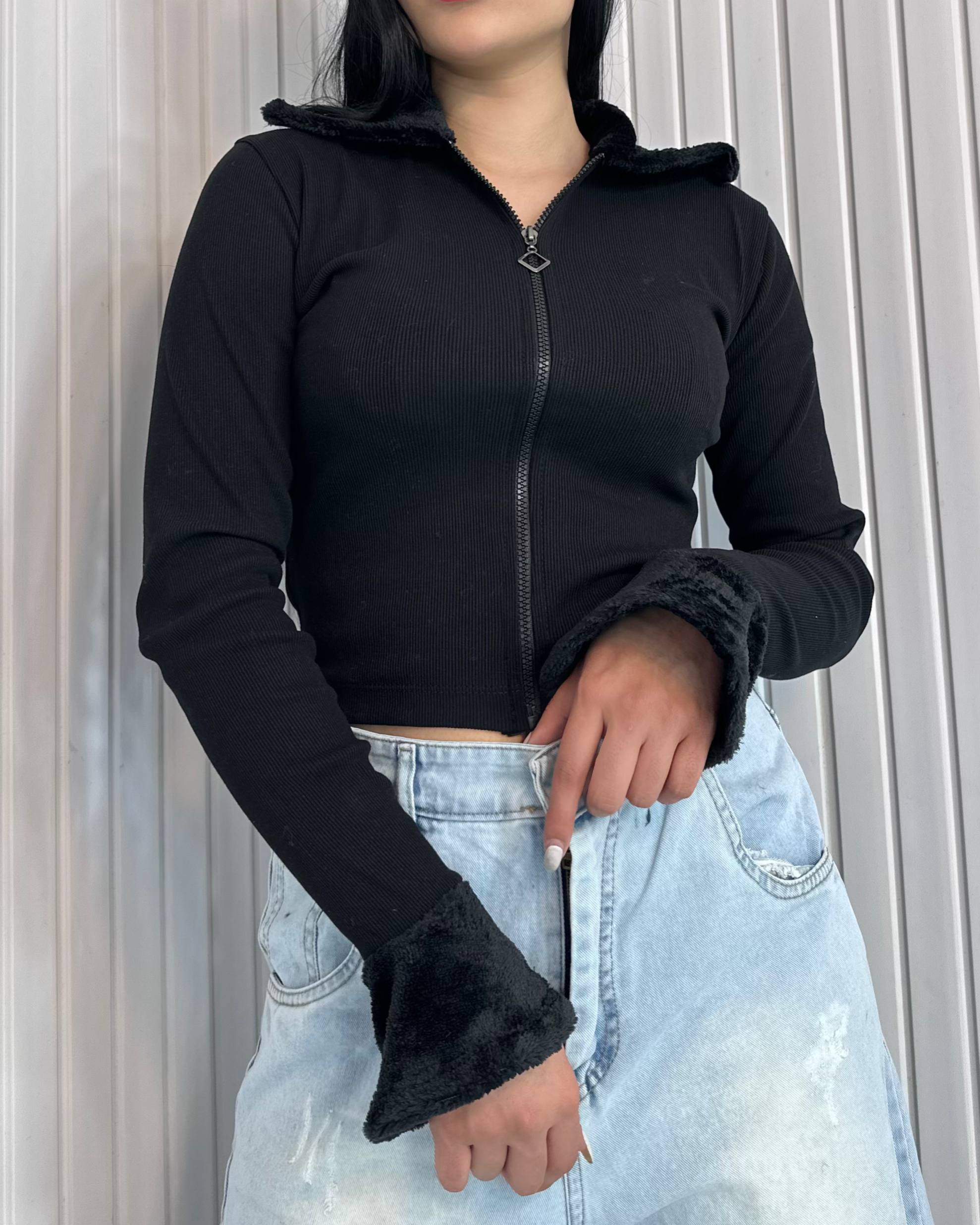 کراپ کبریتی آستین “خز دار”